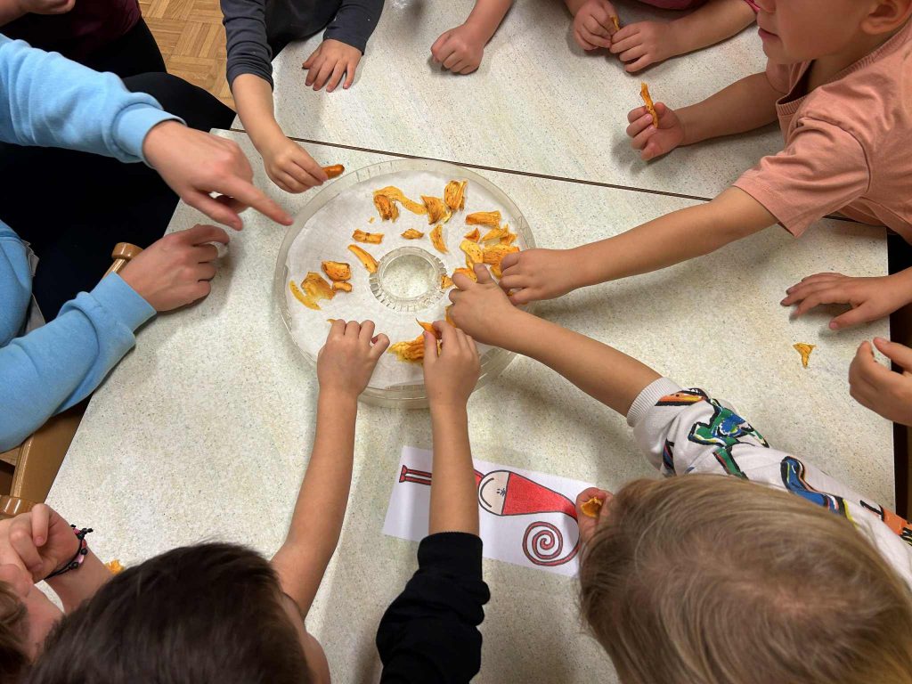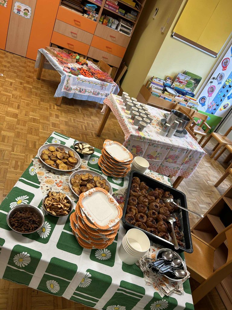 V okviru Tedna trajnostne mobilnosti smo se skupaj z drugimi otroki iz enote razgibali na Množičnem teku, v tem času pa smo uživali tudi na športnem dopoldnevu s pestrim poligonom in se na čudovito sobotno dopoldne skupaj s starši odpravili še na pohod na Kokoš. V Tednu otroka krepili prijateljske vezi in spoznavali pomen prijaznosti. Ob prihodu Tete Jeseni in jesenski tržnici smo spoznavali jesenske plodove ter razvijali občutek za sodelovanje in deljenje. Iz sladkega grozdja Kmetije Krmac smo skuhali slastno marmelado, iz buč toplo juho, kakije, ki smo jih sami nabrali v sadovnjaku kmetije Giassi-Žagar pa smo posušili za zdravo malico. Sodelovali smo na razstavi ob 22. Prazniku kakija in se udeležili otvoritve. Z zanimanjem smo prisluhnili reševalcem iz ZD Izola in gasilcem GB Koper, ki so nas učili o pomoči in varnosti, ter nam razkazali svojo opremo. V tem času nas je obiskala tudi terapevtska psička s svojo vodnico (Tačke pomagačke).