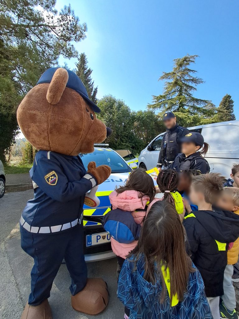 Iz našega vrtca smo se Škratki odpravili na poseben sprehod, kjer so nas spremljala policista Simona in Rok ter policijska maskota medvedka Pika. Na zanimiv in poučen način so nam predstavili pravila varnega obnašanja v prometu. Skupaj smo opazovali prometne znake, se pogovarjali o pravilnem prečkanju ceste in o tem, kako pomembno je, da smo kot pešci vedno zelo previdni.